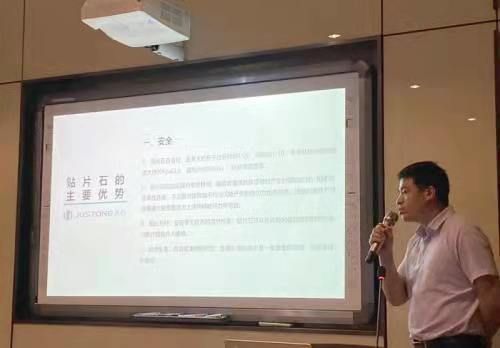 銷售部長劉明高在會上對貼片石做了介紹,大家表示出濃厚的興趣,各單位代表踴躍提問,豐新華董事長在現(xiàn)場作了一一解答。